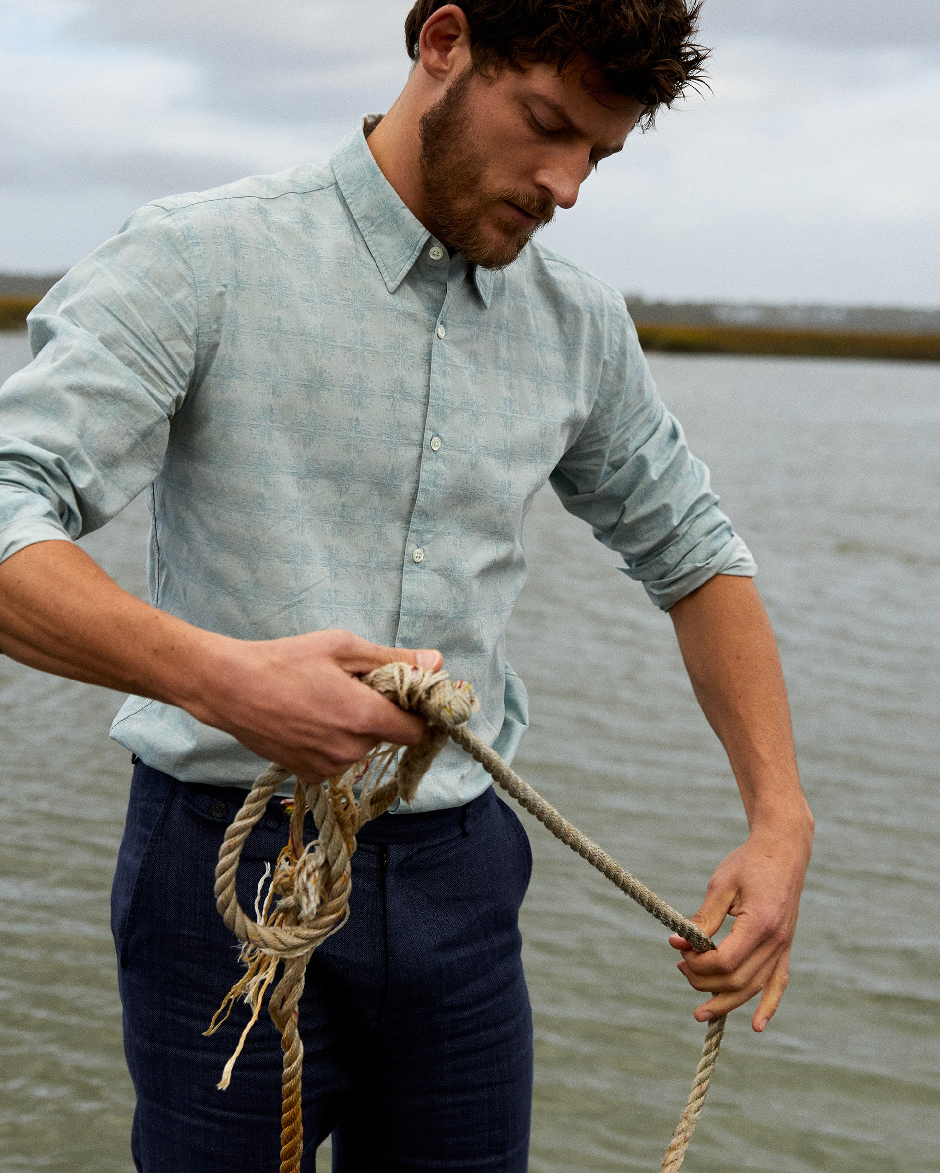 Billy Reid Men’s Melange Tile Wilson Shirt | Steel Blue