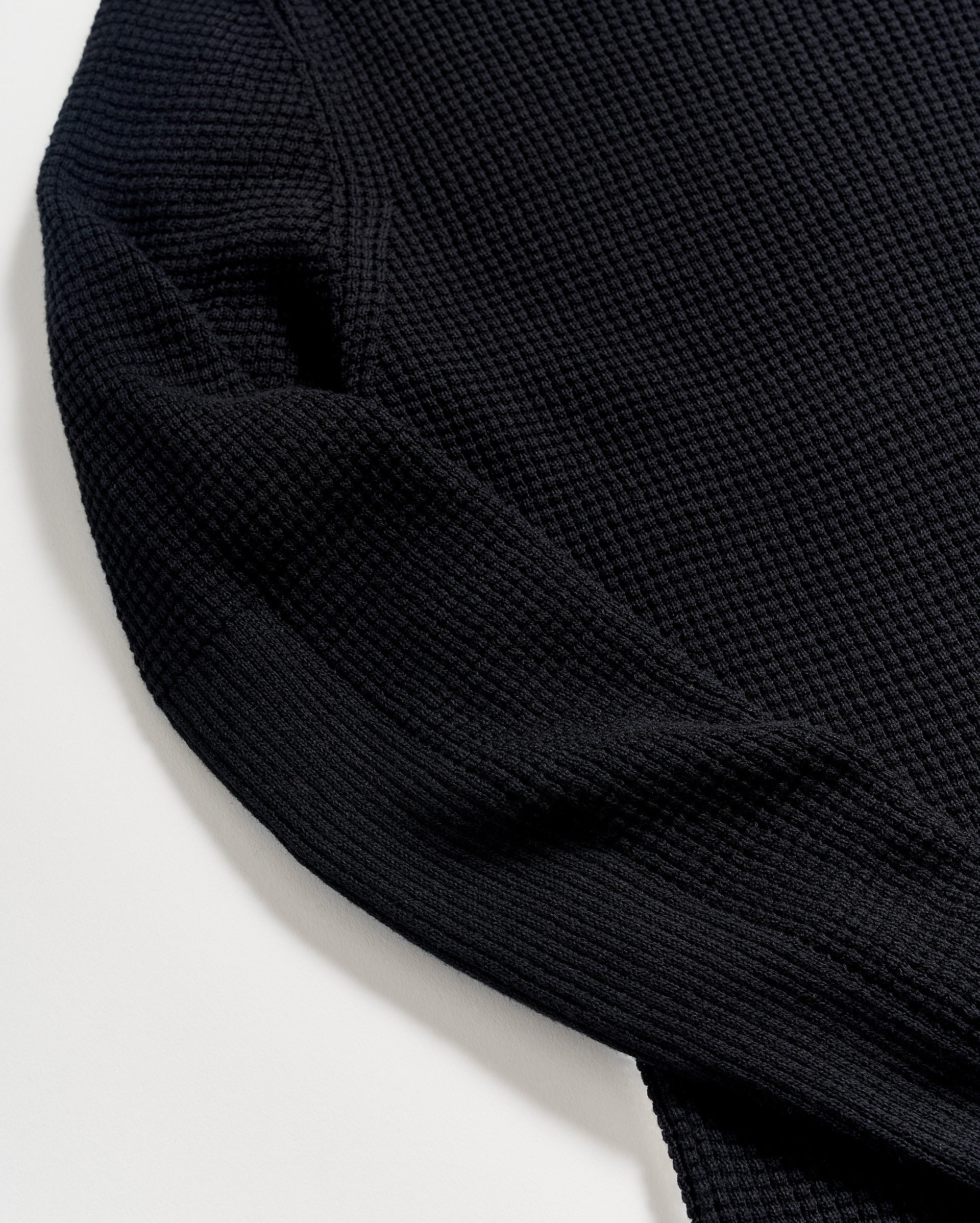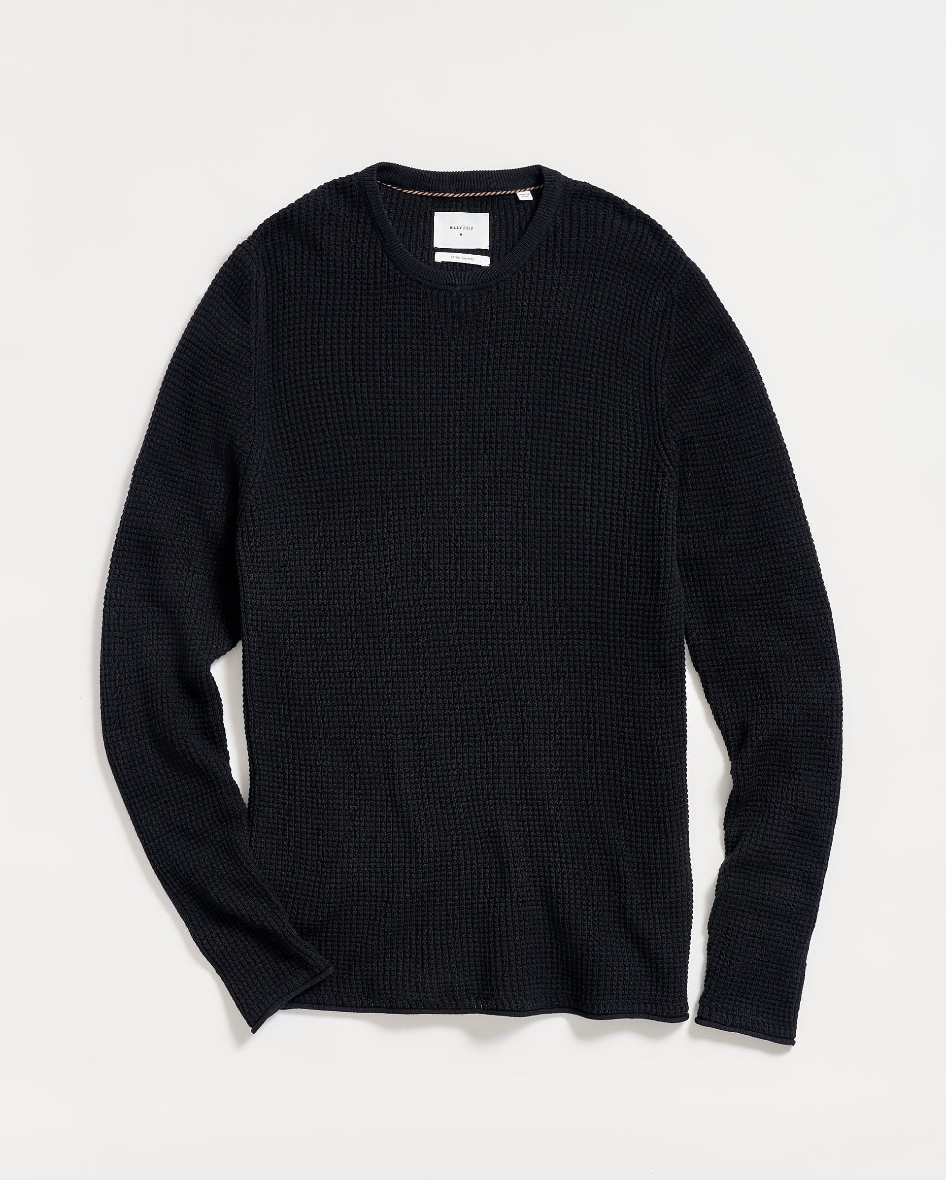 Our bestselling cotton-cashmere Mini Waffle Crew is ultra-soft, lightweight and features a reverse waffle weave at the elbows and jersey roll at the hem. It’s finished with thoughtful Billy Reid design details, like our signature heirloom ribbon stripe at the back neck. It’s a versatile transition piece that can effortlessly be worn alone or layered underneath a sweater or jacket.