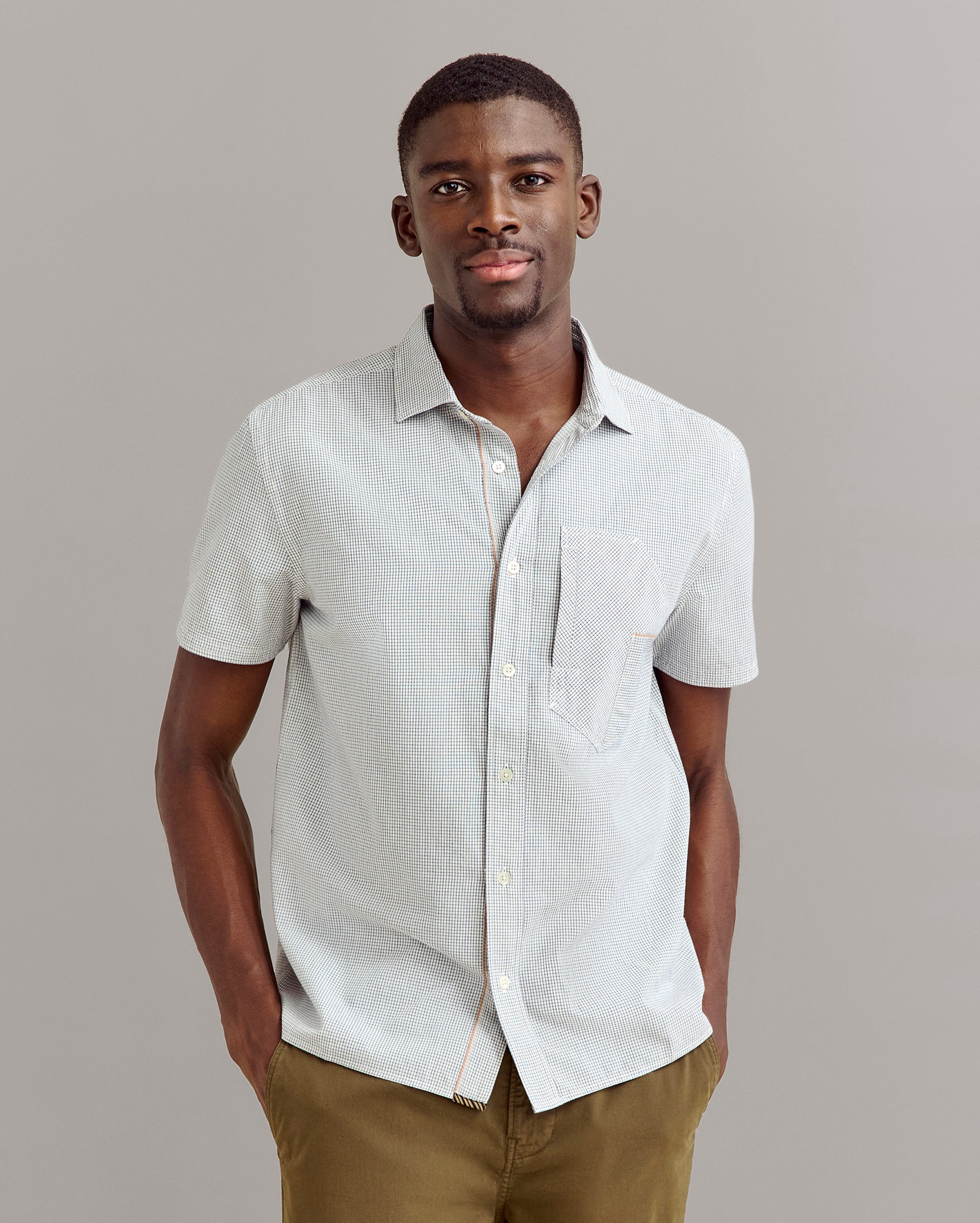 Billy Reid Men’s Short Sleeve Selvedge Work Shirt | White & Carbon Blue