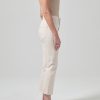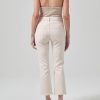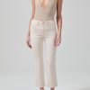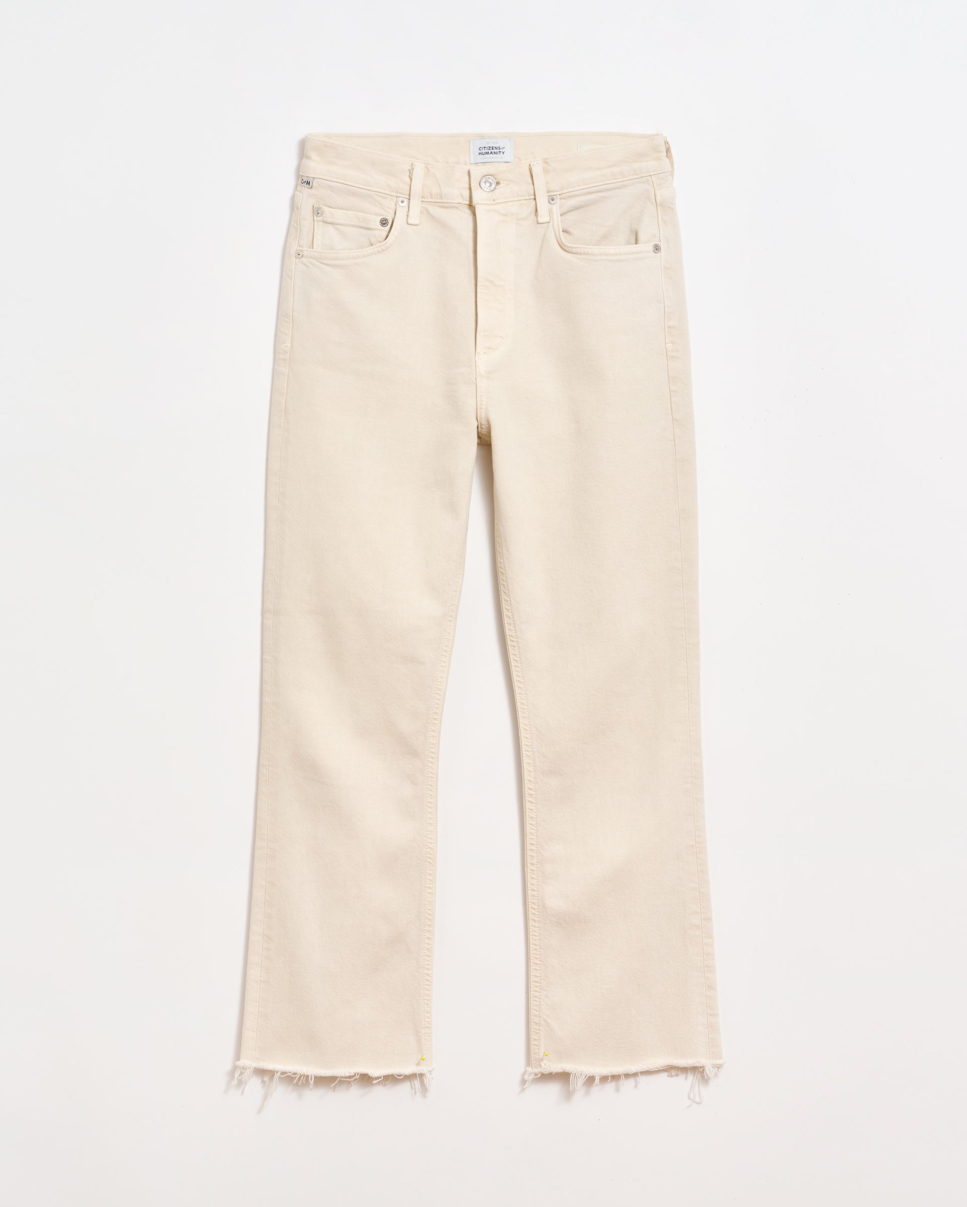 Your new go-to. The Isola features a flattering mid-rise with a close fit through the leg and subtle bootcut flare, fitting true-to-size. This cropped fit hits right above the ankle and boasts a medium to light beige coloring with a perfectly frayed hem. They wear comfortably all day long with just the right amount of stretch and a soft, luxurious hand. This transitional style will be your new closet staple.