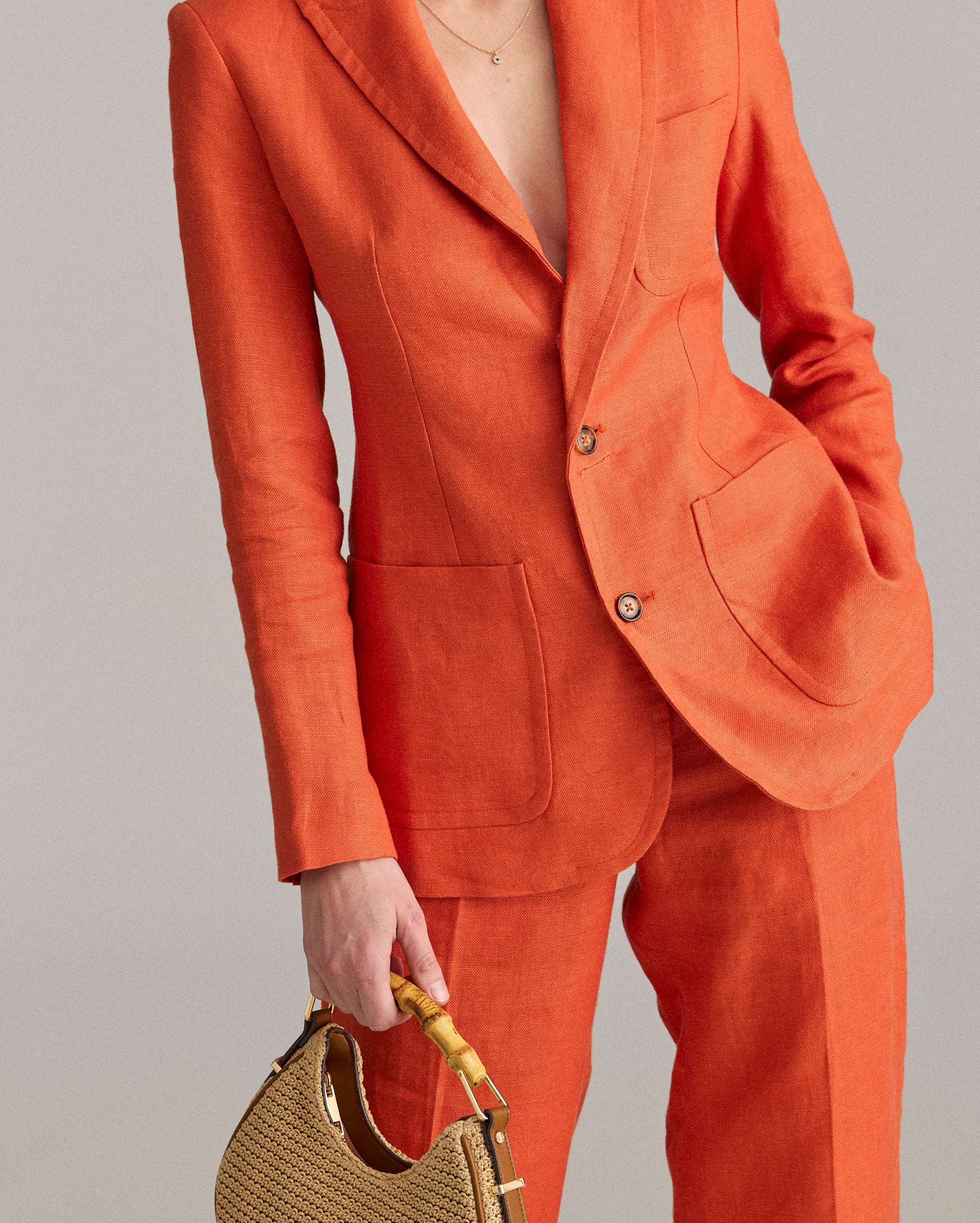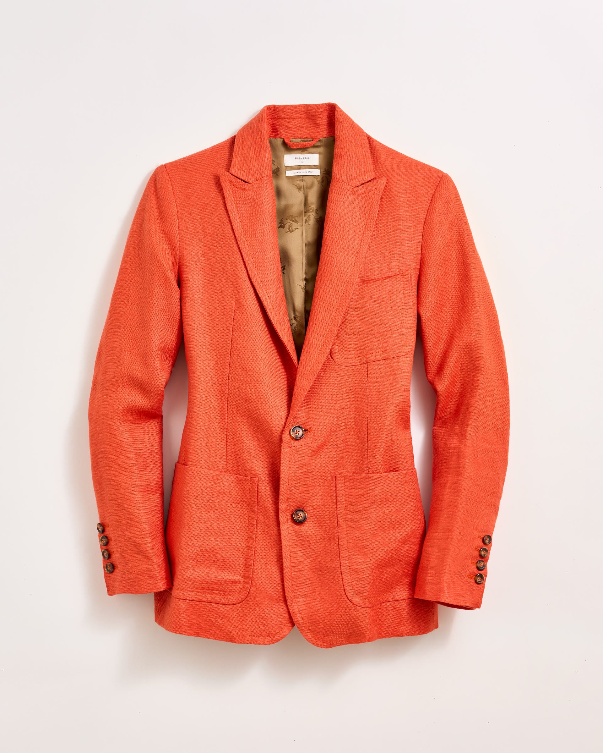 This blazer is meant to take the timeless silhouette of our peak lapel blazer and reimagine it in a new fabrication meant for warmer days ahead. The lightweight, breathable linen fabric offers a flexible range of motion in a slim-fit silhouette to look great for a special occasion or over a tee to spruce up an everyday look. The jacket is finished with a pelican jacquard, a tonal pickstitch, and our heritage ribbon stripe on the undercollar.