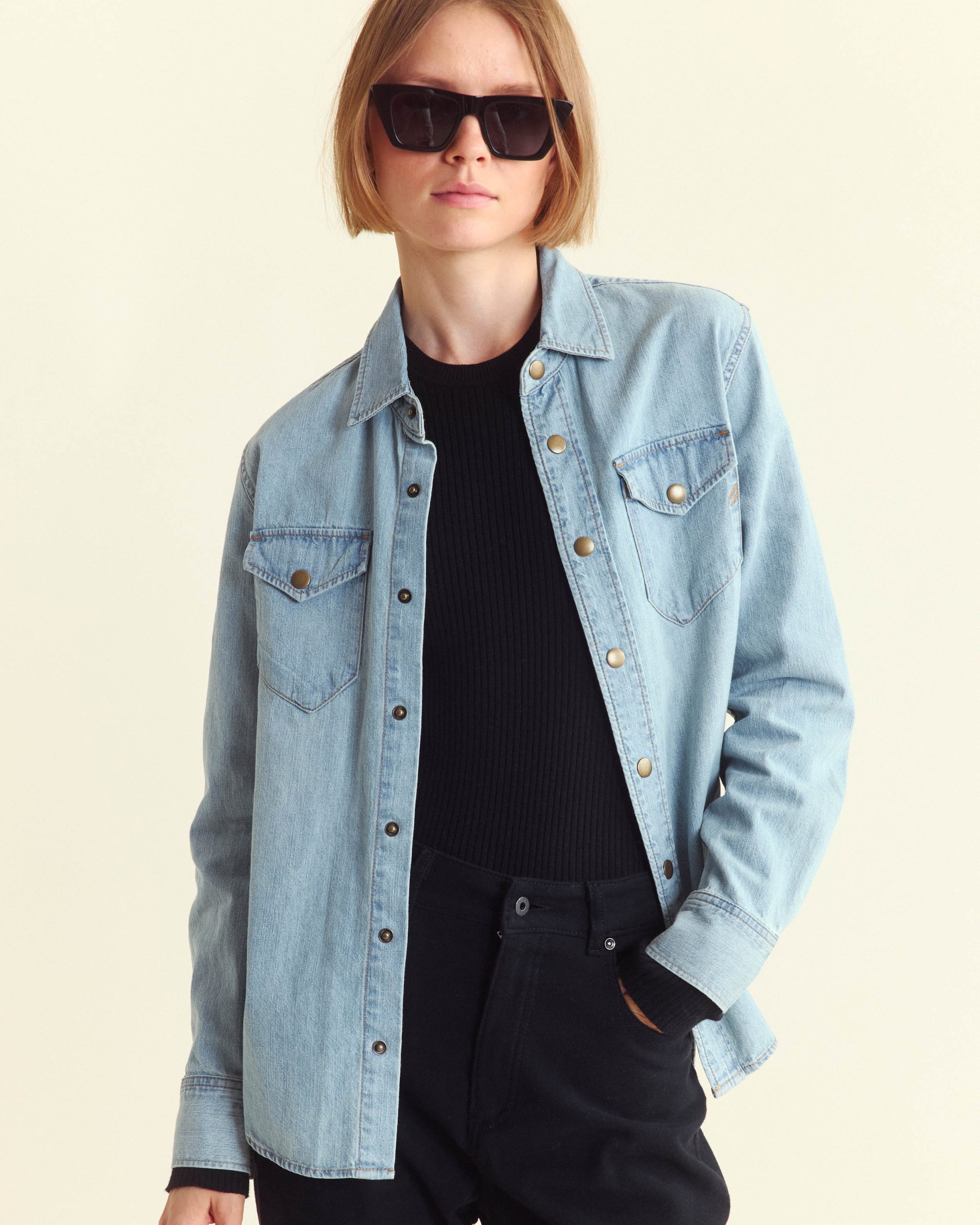 Inspired by our iconic Shoals Denim Shirt, this shirt offers the same authentic details (like a workwear-inspired wash and antique brass snaps) but in a more feminine silhouette. Dress it up with a jacket or a skirt, or wear it as an elevated layering piece over your favorite tee.