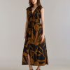 Billy Reid Women’s Silk Brush Stroke V-neck Maxi Dress | Billy’s Brown & Black