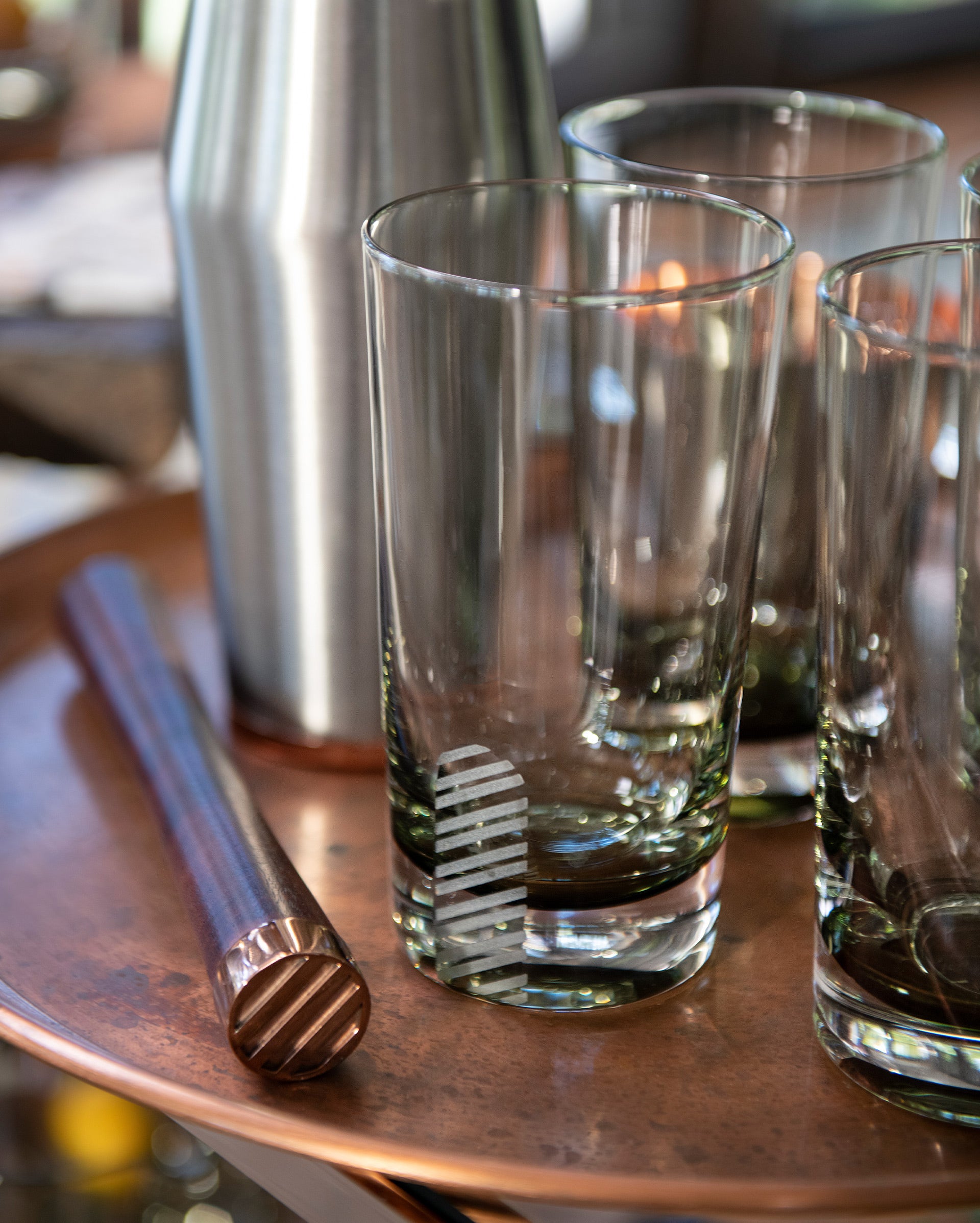 Upgrade your next cocktail hour with exclusive glassware and tools from our collab with Williams Sonoma. Ideal for extracting juices and aromatic oils, our double-sided acacia muddler features a wooden end for herbs and a copper-plated steel end for fruit.